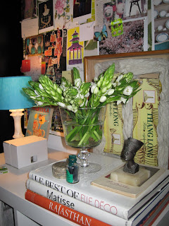 Today I had inspiring conversation over coffee with Malva. She brought me these perfect little white lilies. Translated from Dutch they are called "South Wind" lilies. They cheer up my studio on this grey day!